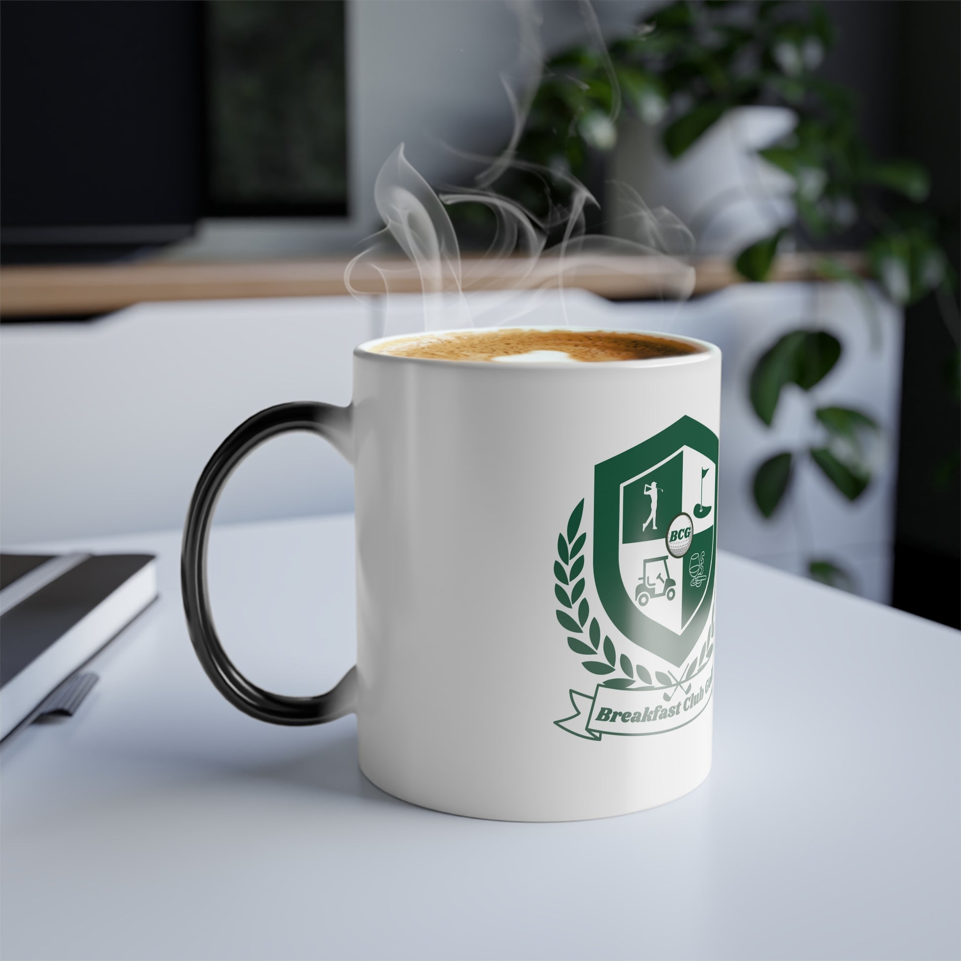 This Breakfast Club Golf Coffee Mug changes color and will be the gift that keeps on giving. The heat-reactive surface reveals your BCG design once the mug gets warm. The ceramic cup will go back to its original black outside and white inside when it cools down. The C-shaped handle helps keep a sturdy grip. It comes in one size – 11oz (0.33l) – plenty for that big morning cup of coffee.