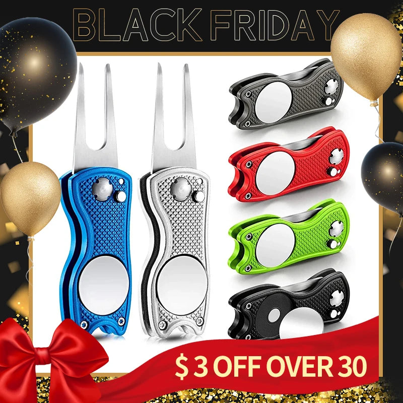 Foldable Golf Divot Repair Tool with Golf Ball Tool Pitch Groove Cleaner Golf Accessories Putting Green Fork Golf Training Aids