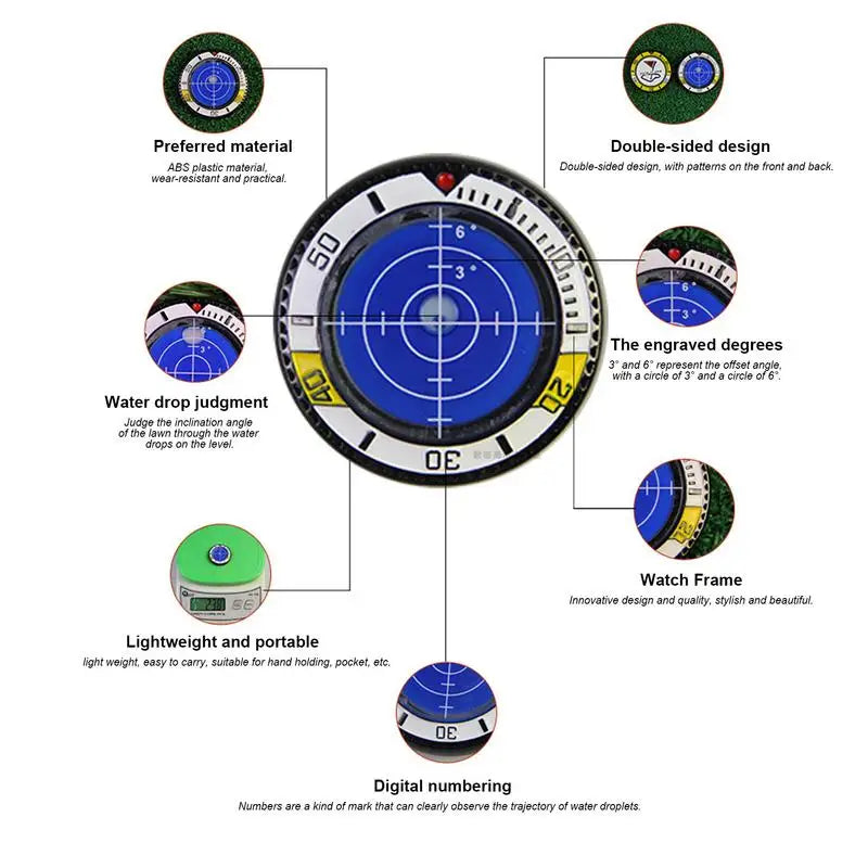 2.Putting Accuracy: Helps golfers effortlessly fine-tune their putting power and direction angle. The ball marker level provides an accurate green slopes reader, enabling precise strokes adjustments for improved putting techniques.