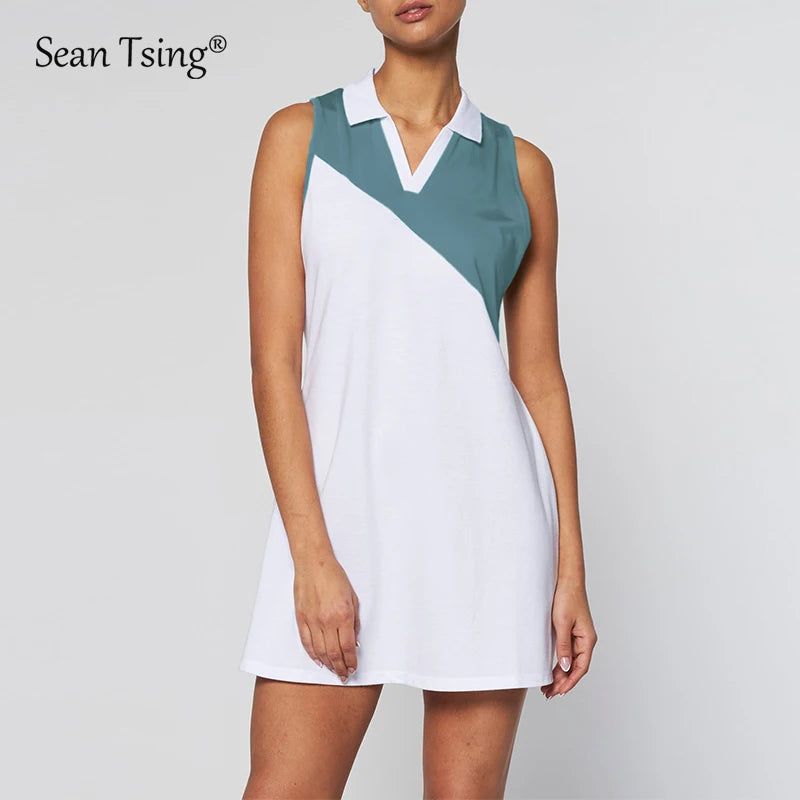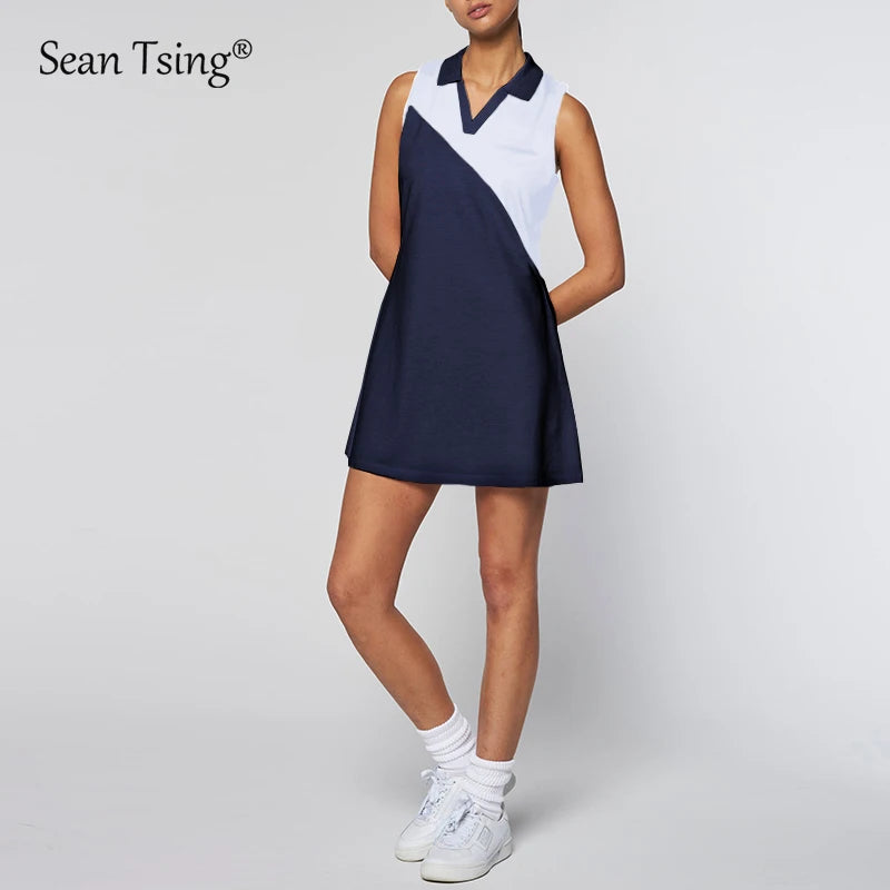 Golf Tennis Dresses with Shorts Women Sleeveless Turn-Down Collar