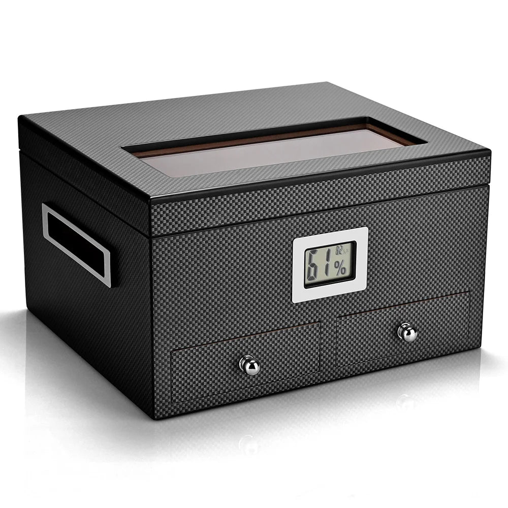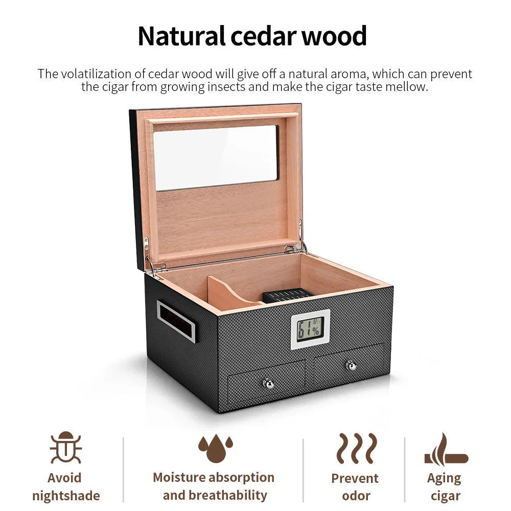 Luxury Cigar Humidor Windproof Cedar Wood Cigar Humidor Box with Humidifier Hygrometer Moisturizing Cigars Portable Cabinet Case