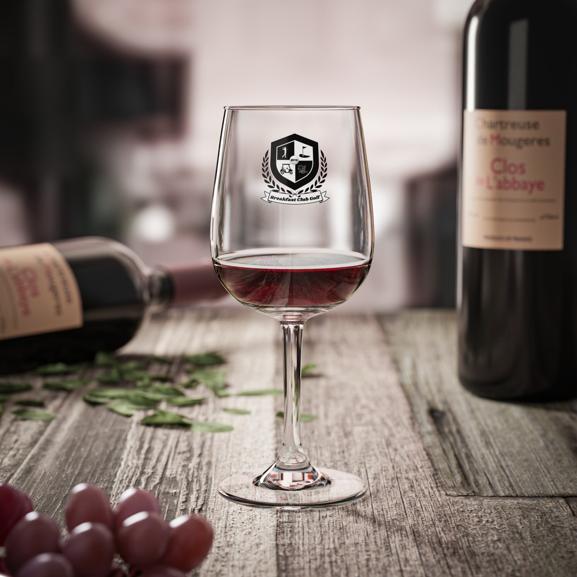 The "Chase" Wine Glass, 12oz black tees logo