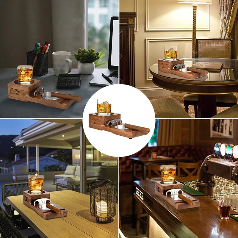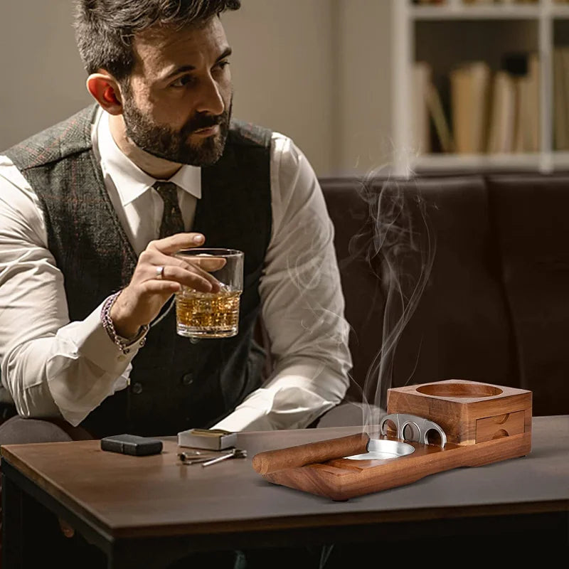 Wooden Cigar Ashtray Beverage Solid Wood Coaster Whiskey Tray Cigar Holder Cigar Box